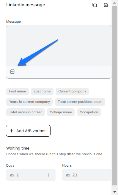 - For email messages, choose where to insert your image or GIF. For LinkedIn messages and InMails, Marketing gig will place your personalized images and GIFs at the bottom of the message.
