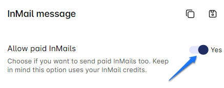 Here's where it gets interesting: Marketing gig enables you to blend paid and free InMails in your Smart Sequence. Our algorithm makes a difference between Open Profile users and those who can only receive paid InMails. By toggling the "Allow paid InMails" button in the platform, you empower the Smart Sequence to make this decision for you, ensuring a smooth path to your lead through InMail.